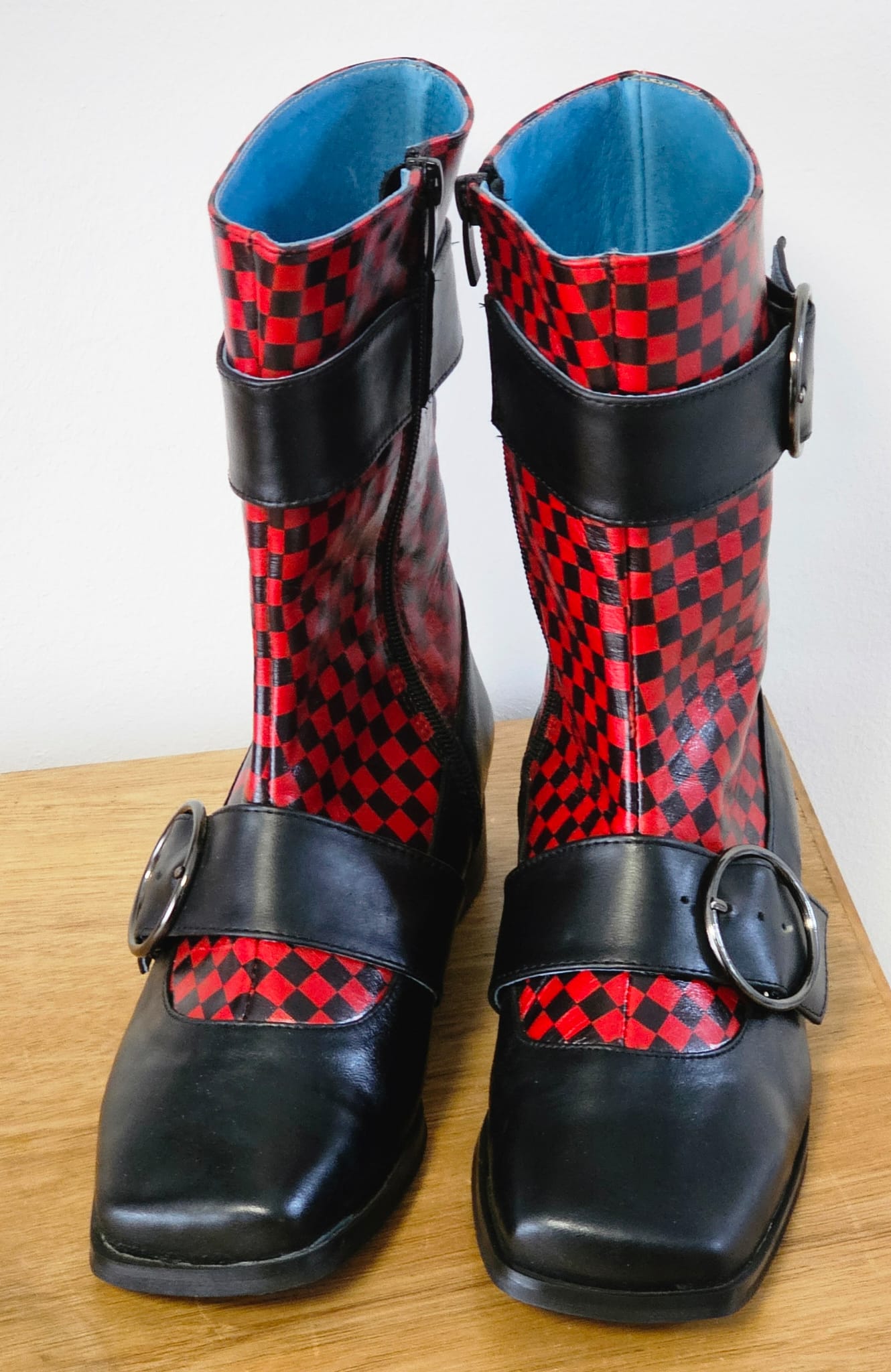 דורותי שחור / משבצות אדום, מגפי נשים, נעליים מעוצבות, נעלי נוחות, מגפיים מעור איכותי, מגפיים מיוצרים בעבודת יד, מגפיים לנשים