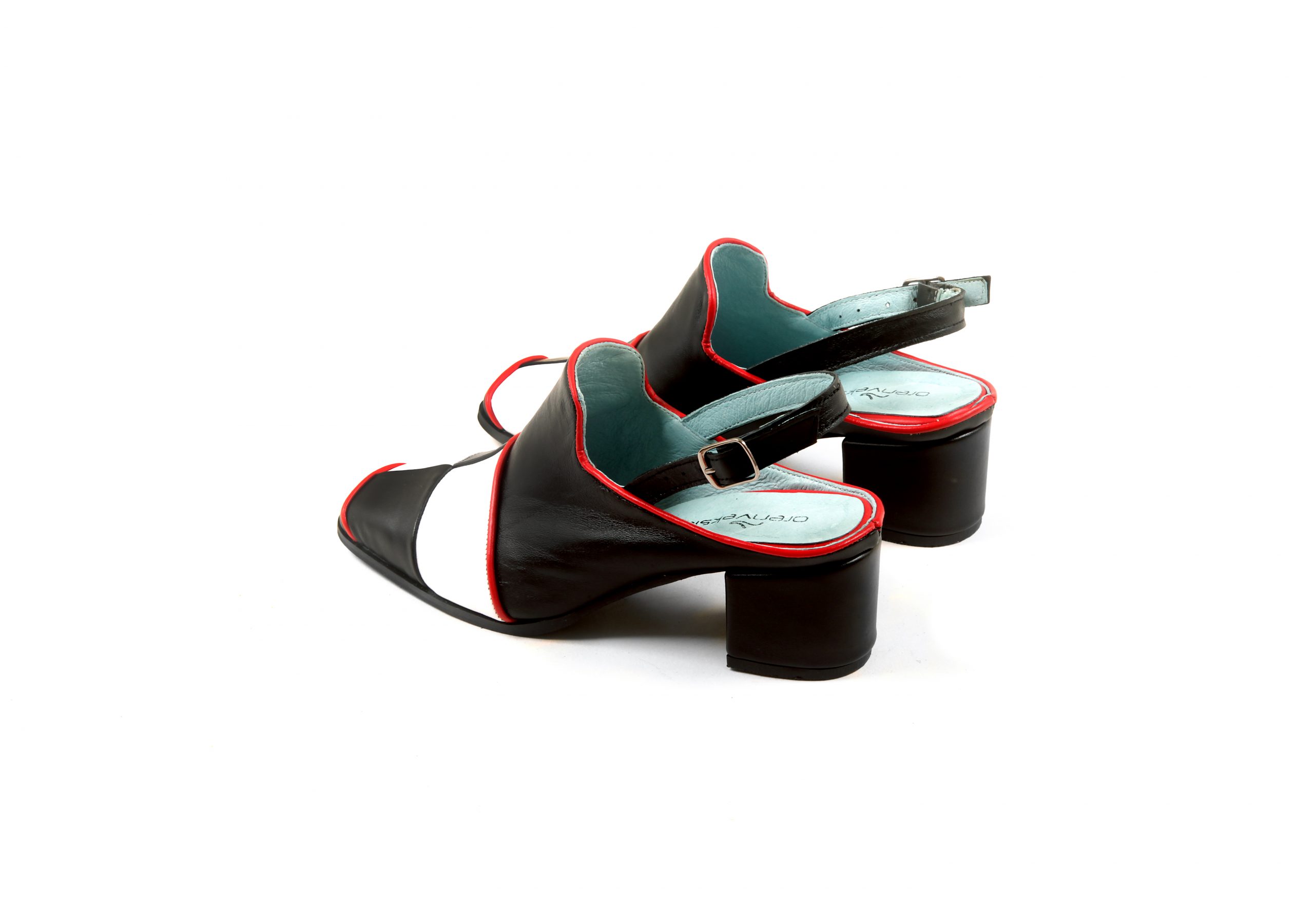 סנדלים דגם מרגוט, שחור לבן, סנדלי נשים נוחות, נעלי נשים, נעליים מעוצבות, סנדלי עקב 5 ס"מ, סנדלים בעבודת יד.