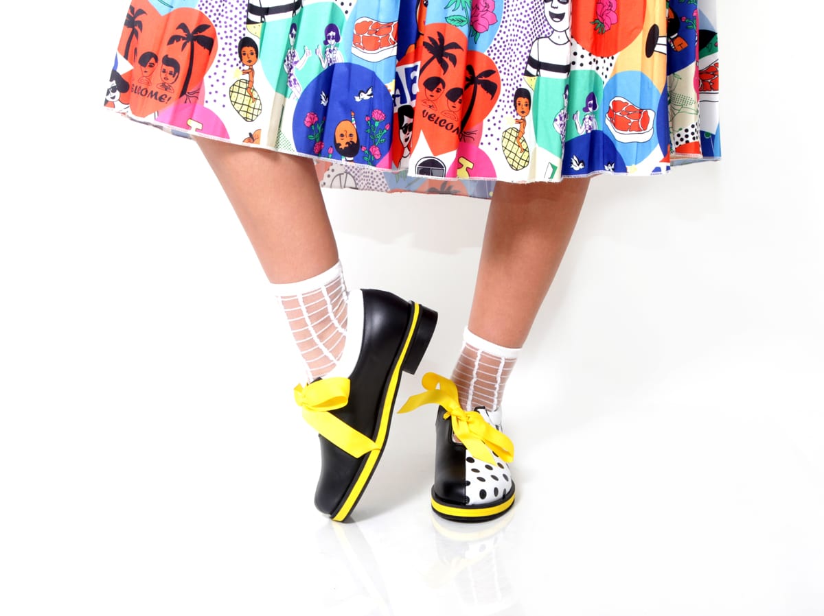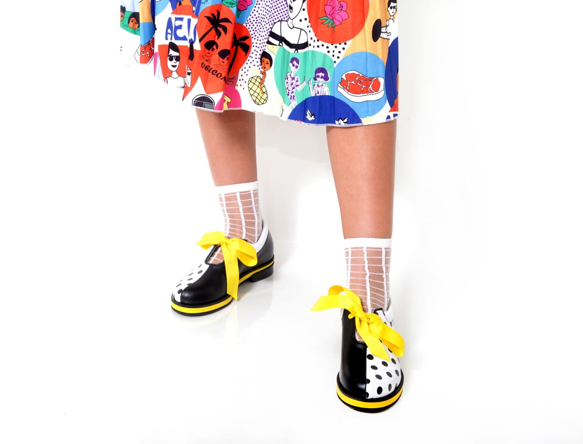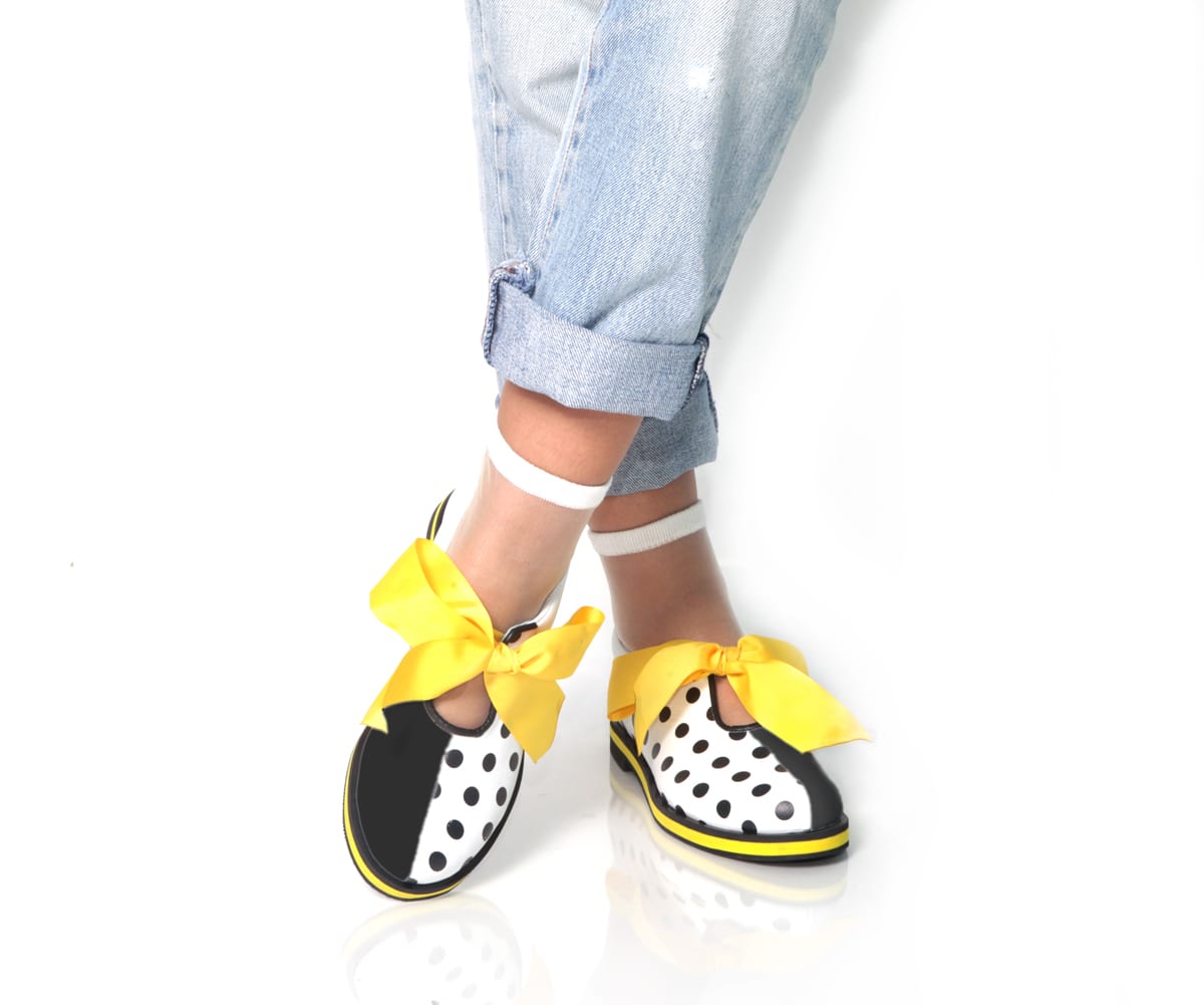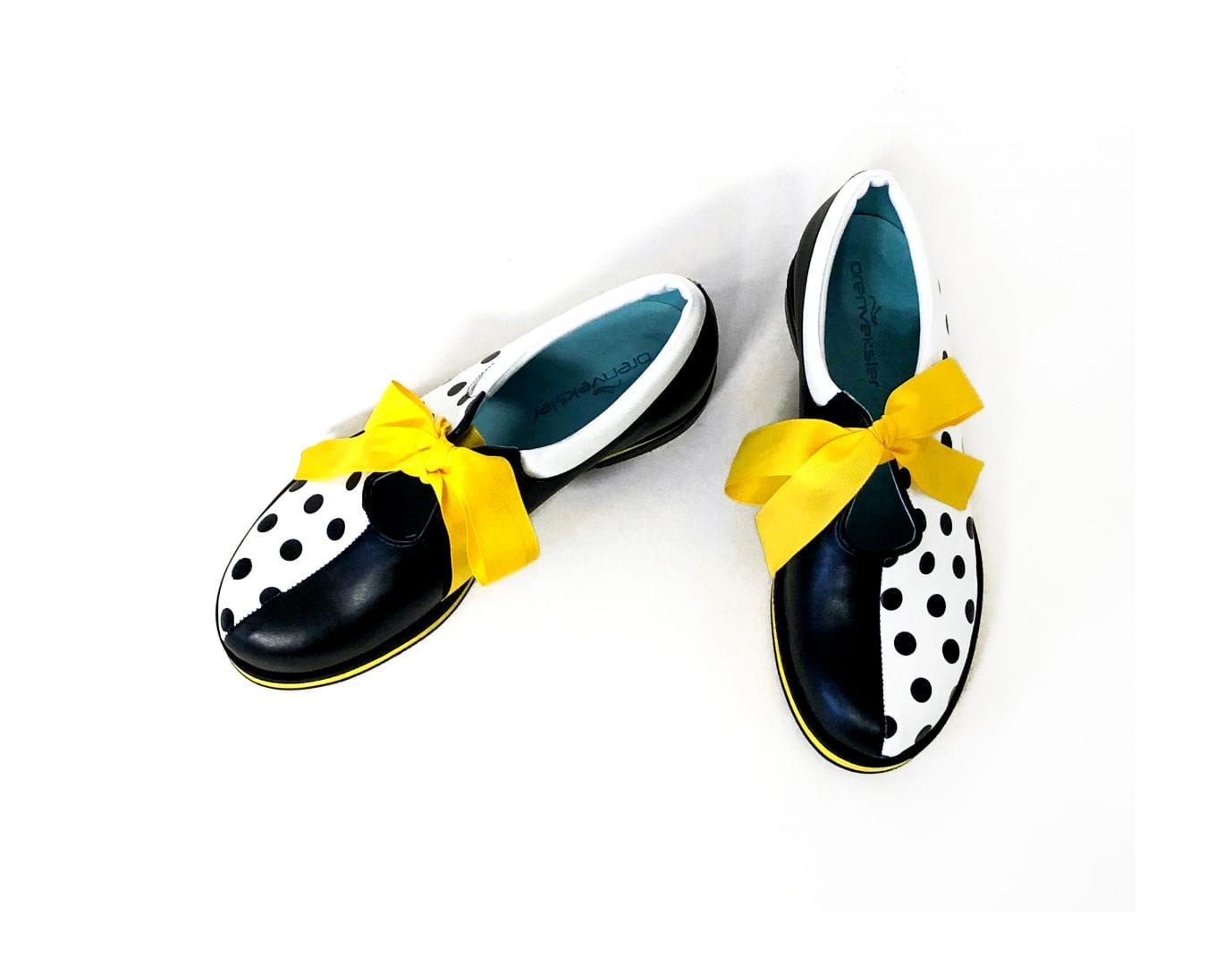 דגם תיאה חצי שחור חצי נקודות, עור איכותי, עבודת יד, נעלי נשים, נעליים סגורות, עקב גובה 1 ס"מ, נעליים נוחות, סוליה סינתטית, אימום נוח